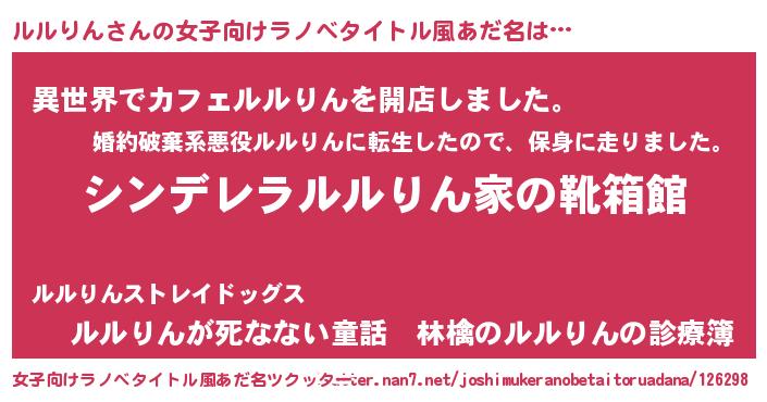| 胡散臭い通販商品みたいなあだ名 | 『絶対に幸福をもたらす健康食品…その名も「ルルりん」』 |