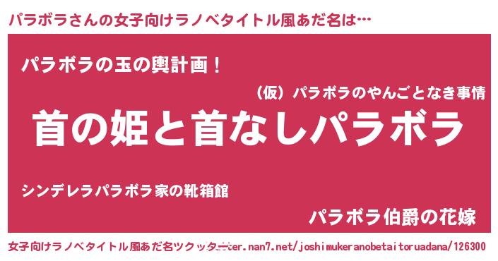 | 男性向けラノベタイトル風あだ名 | 『はたらくパラボラさま!』 |