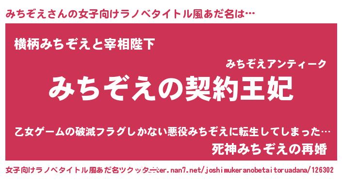 | 男性向けラノベタイトル風あだ名 | 『誰もが恐れるあのみちぞえが、ぼくの専属メイドになるようです。』 |