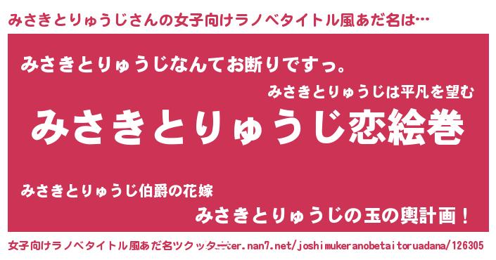 | 男性向けラノベタイトル風あだ名 | 『ノーゲーム・ノーミサキトリュウジ』 |