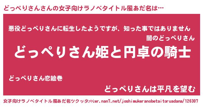 | 男性向けラノベタイトル風あだ名 | 『どっぺりさんの憂鬱』 |