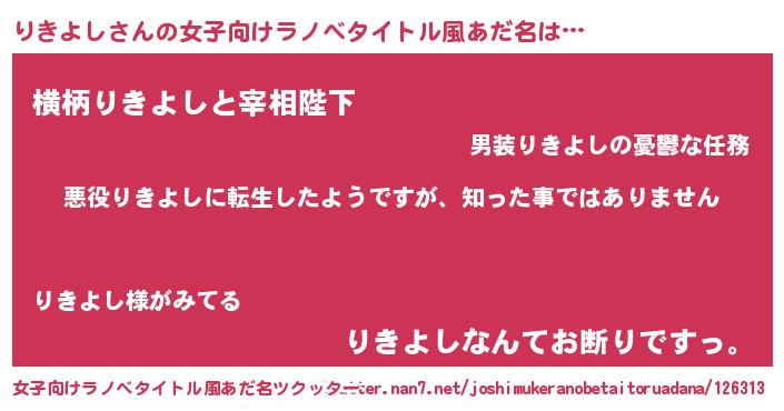 | 男性向けラノベタイトル風あだ名 | 『この素晴らしい世界にりきよしを!』 |