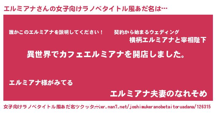 | ヘコむあだ名 | 『エルミアナ(笑)』『エルふぇ~』 |