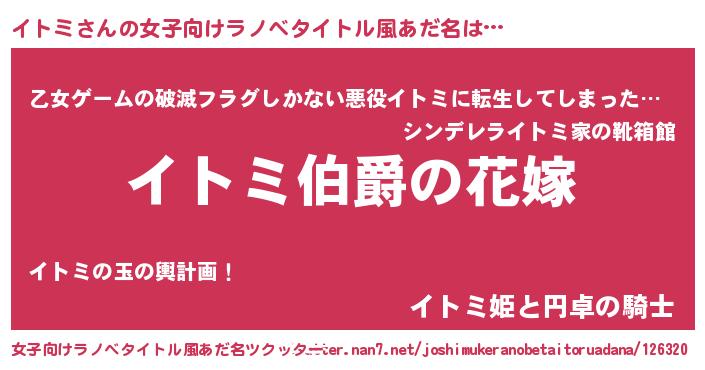 | ファンタジー風あだ名 | 『エターナルイトミー』『ヴァルイトーナ』 |