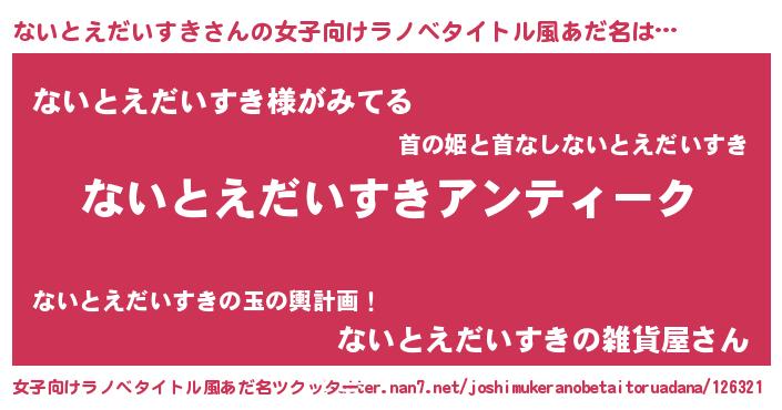 | 意味不明あだ名 | 『自称ないとえだいすき』 |