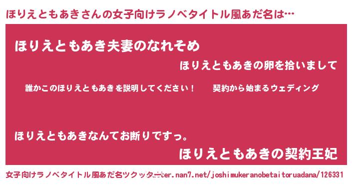 | 恥ずかしいあだ名 | 『プリティーほりえともあき』『ほりちん』 |