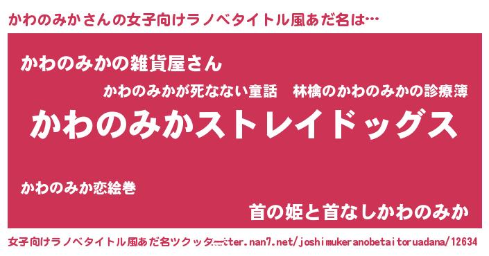 | 意味不明あだ名 | 『自称かわのみか』『永久保存かわのみか』 |