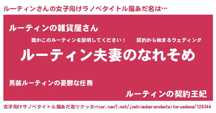 | 男性向けラノベタイトル風あだ名 | 『おまえをオタクにしてやるから、俺をルーティンにしてくれ! 』 |