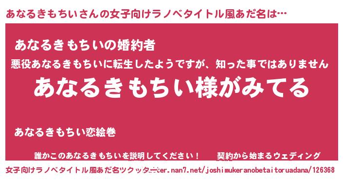 | 男性向けラノベタイトル風あだ名 | 『あなるきもちいの嫁は女の子じゃないと思った?』 |