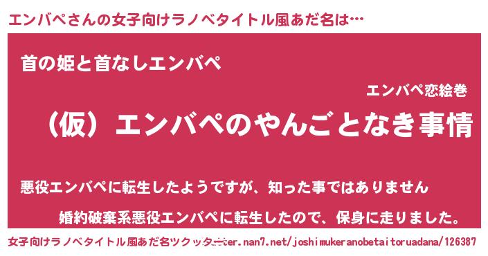 | 男性向けラノベタイトル風あだ名 | 『エンバペの憂鬱』 |