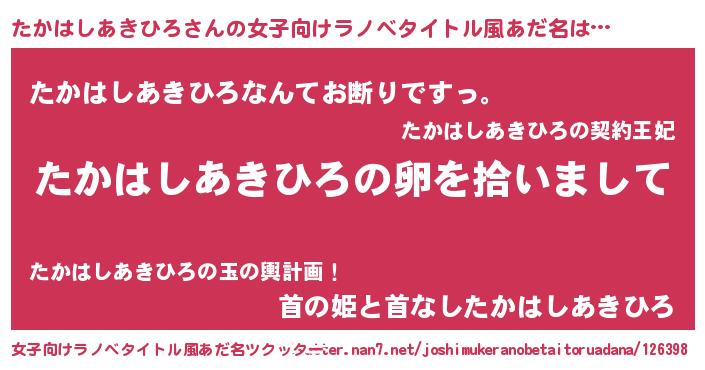 | 意味不明あだ名 | 『とにかく怪しいたかはしあきひろ』 |