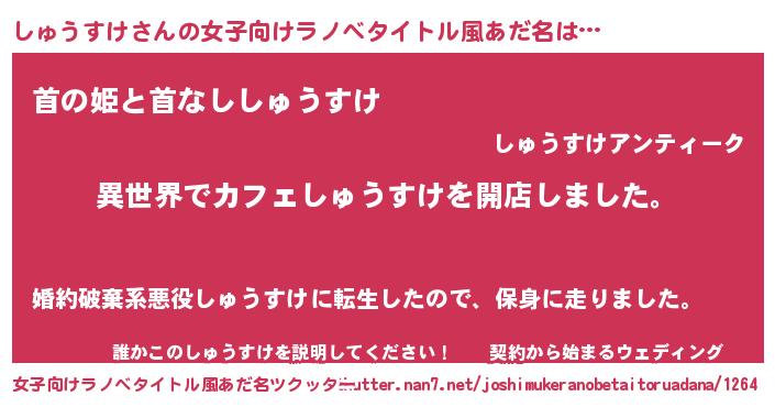 | 男性向けラノベタイトル風あだ名 | 『誰もが恐れるあのしゅうすけが、ぼくの専属メイドになるようです。』 |
