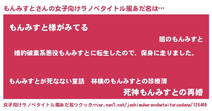| 胡散臭い通販商品みたいなあだ名 | 『信頼と実績のサプリメント…その名も「もんみすと」』 |