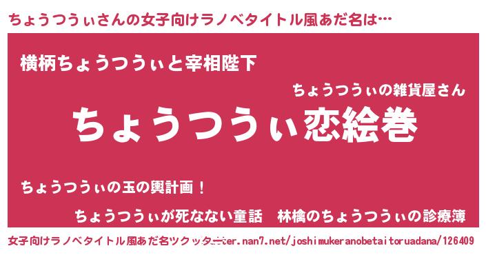 | ヒーロー風カッコイイあだ名 | 『愛の使者ちょうつうぃ』『仮面チョダー』 |