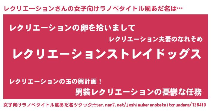 | 男性向けラノベタイトル風あだ名 | 『Re:レクリエーションから始める異世界生活』 |
