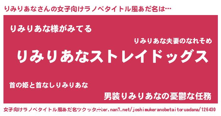 | ヒーロー風カッコイイあだ名 | 『究極戦士リミリアナ』『暗黒騎士リミ』 |