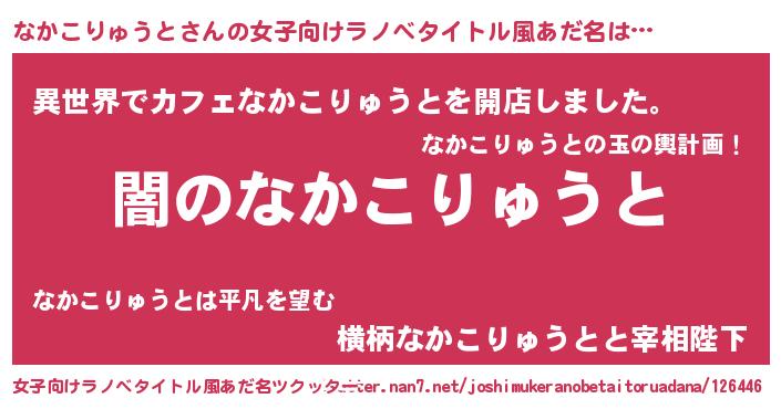 | 男性向けラノベタイトル風あだ名 | 『Re:なかこりゅうとから始める異世界生活』 |