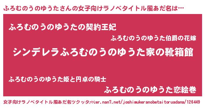 | 胡散臭い通販商品みたいなあだ名 | 『絶対に幸福をもたらす健康食品…その名も「ふろむのうのゆうた」』 |