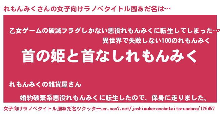 | 胡散臭い通販商品みたいなあだ名 | 『ハリウッド女優が絶賛した100年もののヴィンテージワイン…その名も「れもんみく」』 |