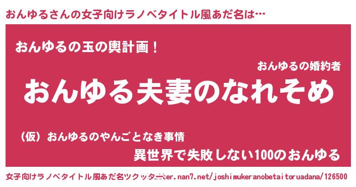 | ヒーロー風カッコイイあだ名 | 『正義の使者おんゆる』『ネオオンユル』 |