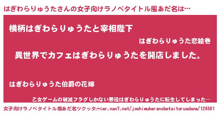 | ヘコむあだ名 | 『はぎわらりゅうた(笑)』『レバニラ』 |