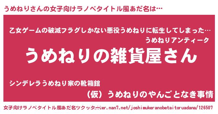 | 男性向けラノベタイトル風あだ名 | 『やはりうめねりの青春ラブコメはまちがっている 』 |
