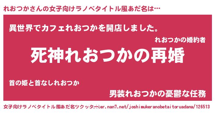 | 男性向けラノベタイトル風あだ名 | 『ノーゲーム・ノーレオツカ』 |