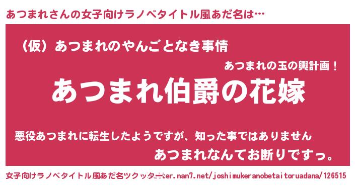 | 恥ずかしいあだ名 | 『あつっちょ』『プリティーあつまれ』 |