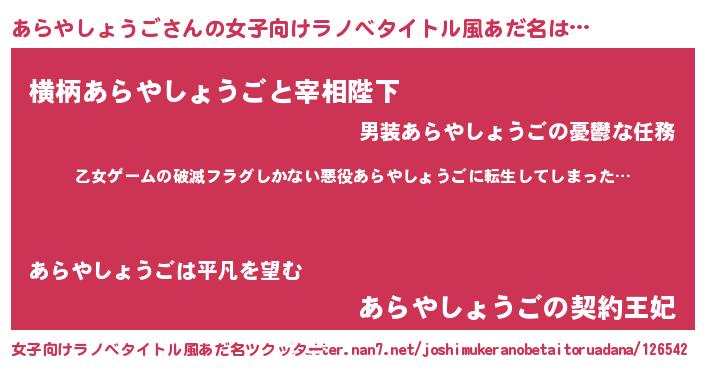 | 男性向けラノベタイトル風あだ名 | 『この素晴らしい世界にあらやしょうごを!』 |