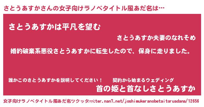 | 胡散臭い通販商品みたいなあだ名 | 『信頼と実績のネックレス…その名も「さとうあすか」』 |