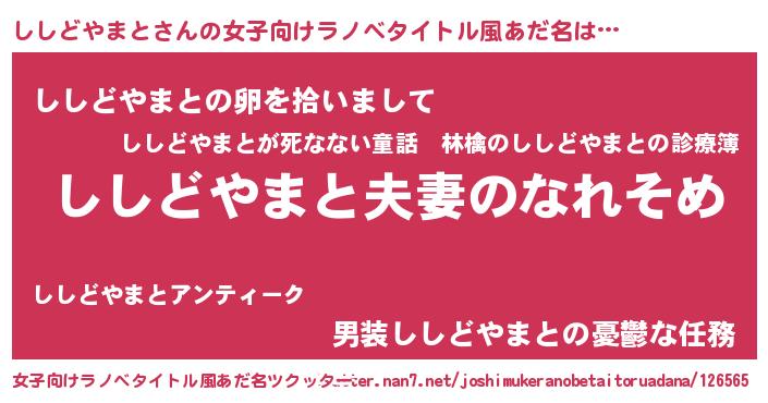 | 男性向けラノベタイトル風あだ名 | 『おまえをオタクにしてやるから、俺をししどやまとにしてくれ! 』 |