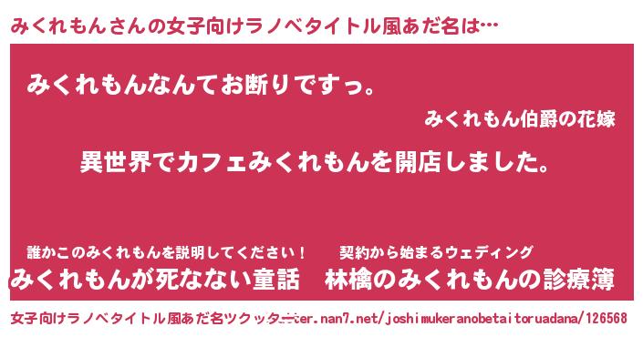 | 男性向けラノベタイトル風あだ名 | 『誰もが恐れるあのみくれもんが、ぼくの専属メイドになるようです。』 |