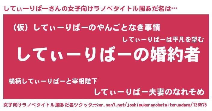 | 意味不明あだ名 | 『してぃーりばーフォーエバー』 |