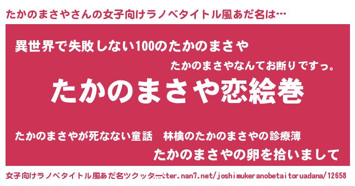 | ヒーロー風カッコイイあだ名 | 『友情の使者たかのまさや』 |