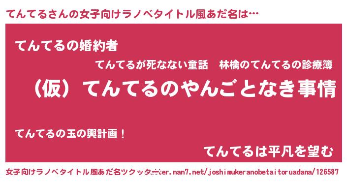 | 男性向けラノベタイトル風あだ名 | 『てんてるの憂鬱』『魔弾の王とてんてる』 |