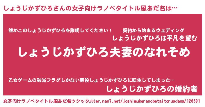 | 男性向けラノベタイトル風あだ名 | 『おまえをオタクにしてやるから、俺をしょうじかずひろにしてくれ! 』 |
