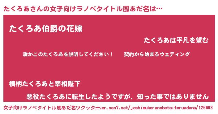 | 男性向けラノベタイトル風あだ名 | 『タクロアアートオンライン』 |
