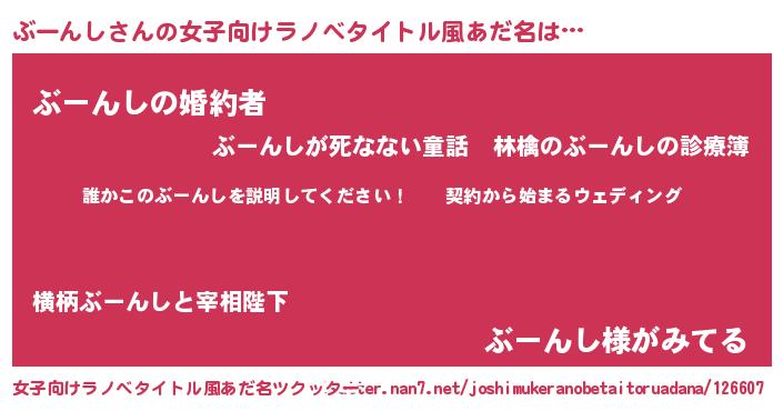 | 胡散臭い通販商品みたいなあだ名 | 『億万長者になれるブレスレット…その名も「ぶーんし」』 |