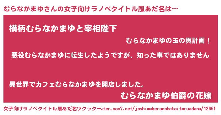 | 胡散臭い通販商品みたいなあだ名 | 『あなたにだけ特別に提供する世界で10本だけ現存している希少なブランデー…その名も「むらなかまゆ」』 |
