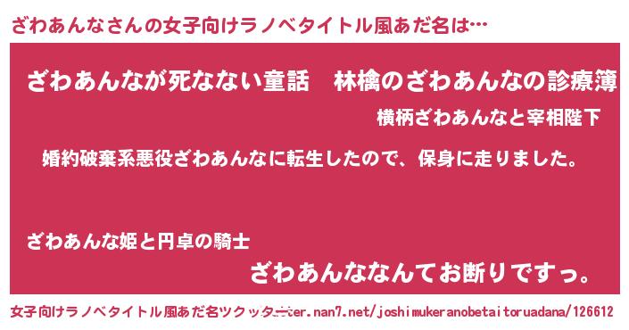 | 男性向けラノベタイトル風あだ名 | 『ザワアンナスレイヤー』 |