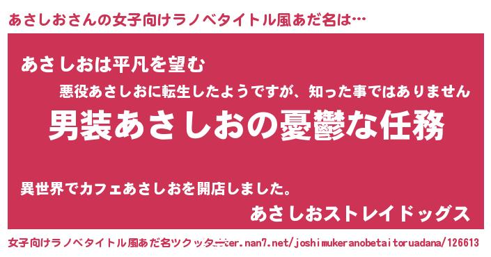 | ヘコむあだ名 | 『あさを』『あさしお(笑)』 |