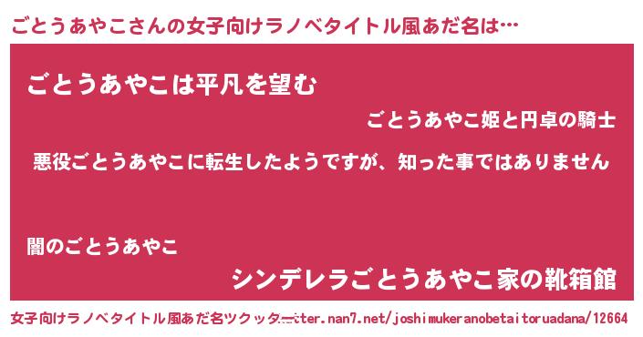 | 意味不明あだ名 | 『住所不定無職ごとうあやこ(71歳)』 |
