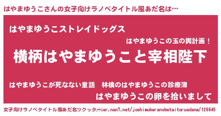 | 男性向けラノベタイトル風あだ名 | 『はやまゆうこに滅ぼされるだけの簡単なお仕事です』 |