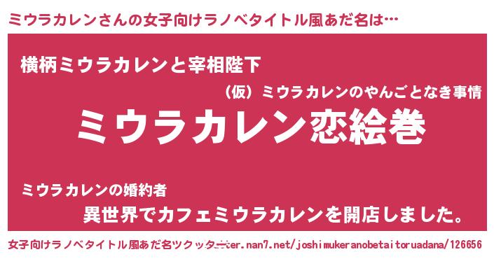 | 男性向けラノベタイトル風あだ名 | 『おまえをオタクにしてやるから、俺をミウラカレンにしてくれ! 』 |