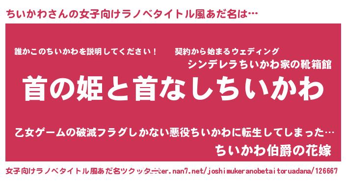| 男性向けラノベタイトル風あだ名 | 『はたらくちいかわさま!』 |