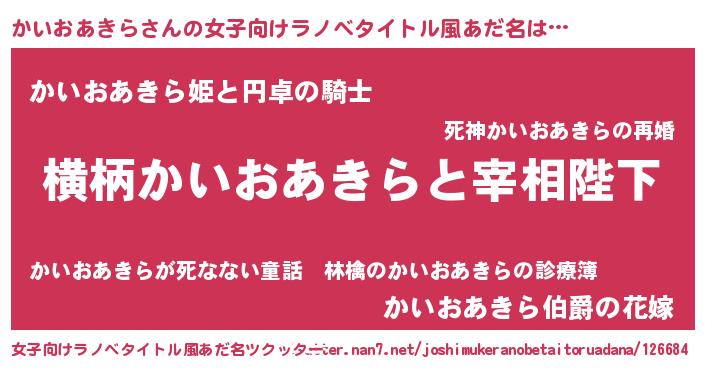| 胡散臭い通販商品みたいなあだ名 | 『億万長者になれるブレスレット…その名も「かいおあきら」』 |