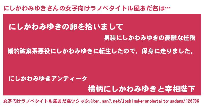 | 胡散臭い通販商品みたいなあだ名 | 『伝統あるサプリメント…その名も「にしかわみゆき」』 |