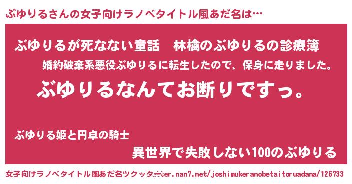 | 意味不明あだ名 | 『自称ぶゆりる』『永久保存ぶゆりる』 |