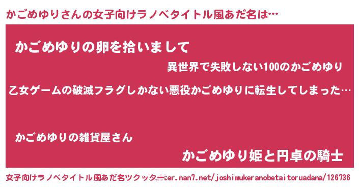 | 男性向けラノベタイトル風あだ名 | 『この素晴らしい世界にかごめゆりを!』 |
