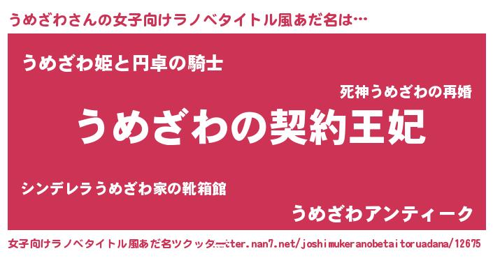 | 男性向けラノベタイトル風あだ名 | 『うめざわという概念が存在しない退屈な世界 』 |